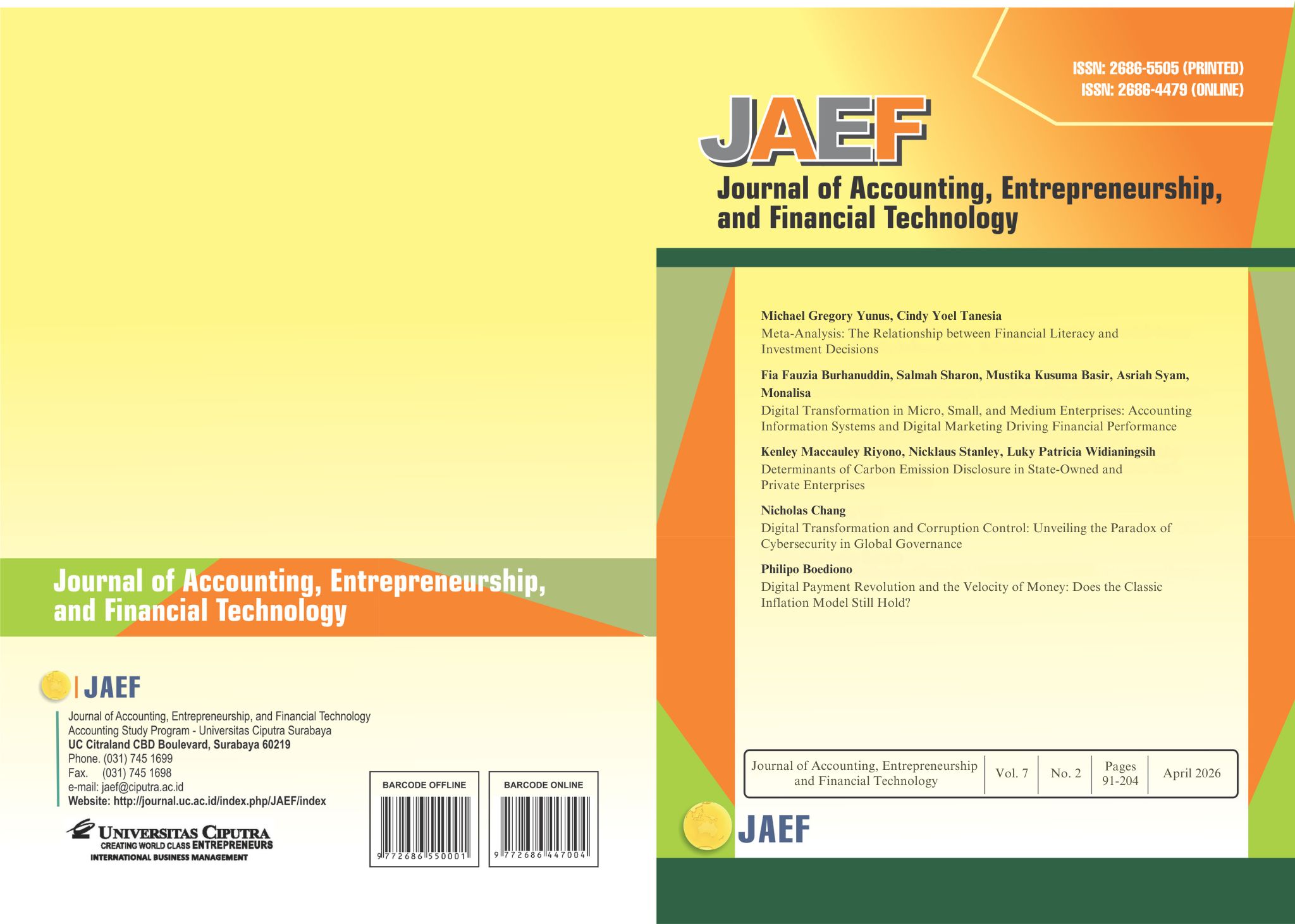 Journal of Accounting, Entrepreneurship and Financial Technology (JAEF)