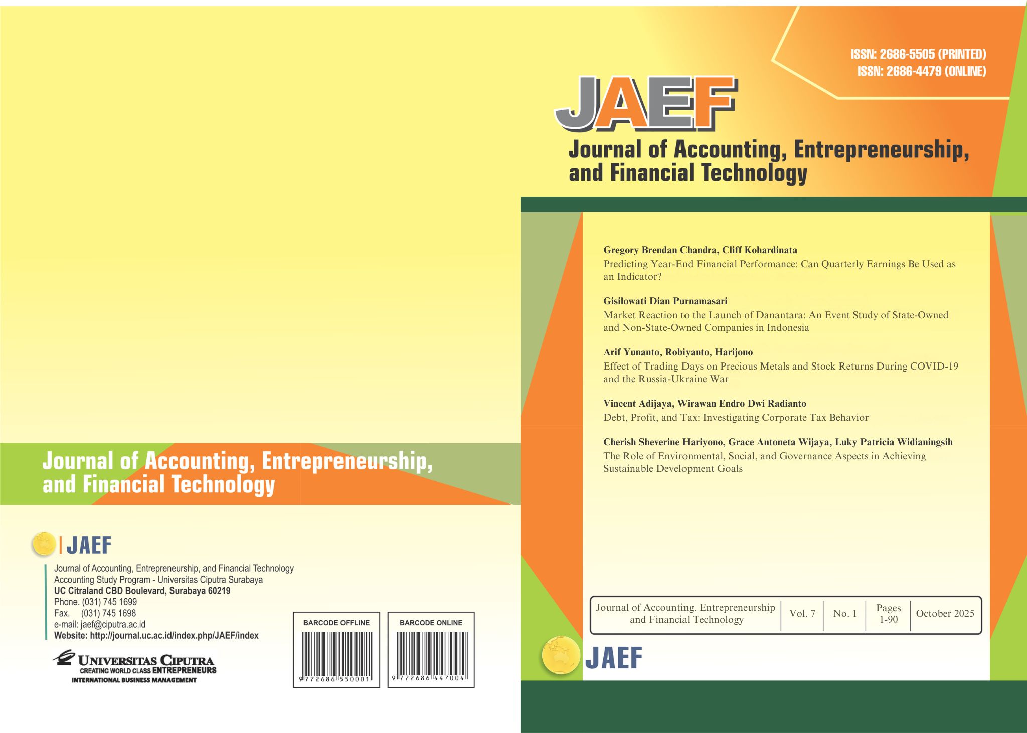 Vol. 7 No. 1 (2025): Journal of Accounting, Entrepreneurship and Financial Technology (JAEF)